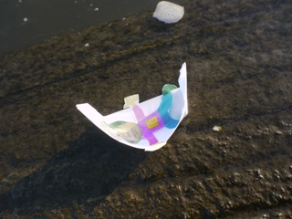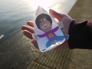 紙の人形(ひとがた)だけだとすぐに沈んでしまいそうだったので、紙の舟の上に厄を孕んだ僕の人形を取り付けた。これに「どうか厄がどこかへ行ってくれますように」と願いを込めて川に流したい。