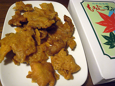 ほんのり甘くて衣が重厚なカリカリしたタイプで、かりんとうみたいでしたよ。口の中にかすかにもみじの風が通り抜けます。味をしめたのでこれからもライターさんの食べているうまそうな物にたいしては物欲しげな視線を投げかけていこうと思っています。
