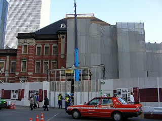さて、続いてはこの記事の冒頭文でも東京名所の一つして挙げた東京駅について見てみたい。レンガ造りが有名な東京駅だが、2010年現在、復原工事を行っており、駅舎がよく見えない状況となっている。