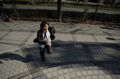 階段を駆け上ると躍動感が出てきた。かっこいいかは別として、サラリーマンの情熱みたいなものがなんとなく感じられる一枚だと思う。