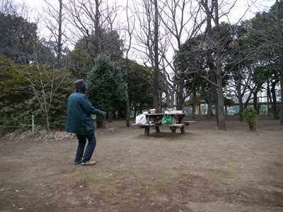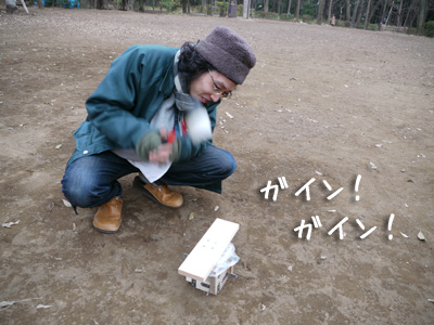 ハンマーはゴム製といえど、精一杯うちおろしているとガイン!ガイン!と静かな公園に乾いた音が響く。