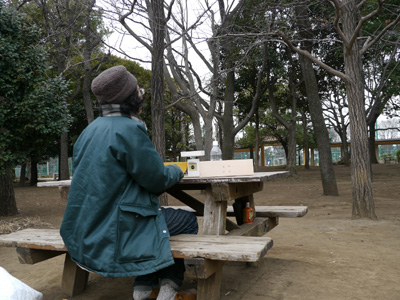来たころはキャッチボールする親子がいたりしてたのに、気づけば人がいなくなった。ちがうんです、ちがうんです、僕はおにぎりにぎってるだけなんです。