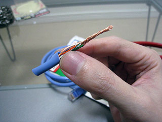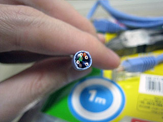 切って剥いてみると意外に凝った作りをしていた。LANケーブルを被膜の上から触ったときのゴワゴワした感触、あれの正体は、細いビニール線がより合わされてる感触だったのか。