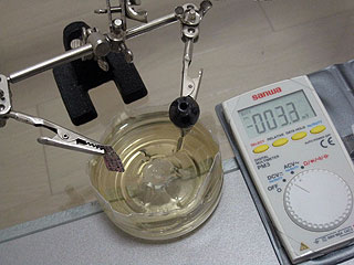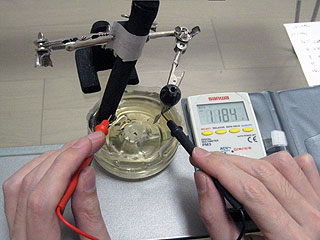 実験セットについていた亜鉛板はかなり優秀だったようで、残念ながら代替品では1.2ボルトを越えるような電圧は出せなかった。