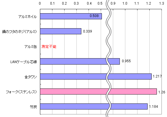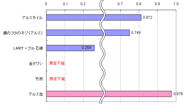 数値が微振動して、安定せず。ここで初の測定不能がでました!アルミニウム勢、惨敗