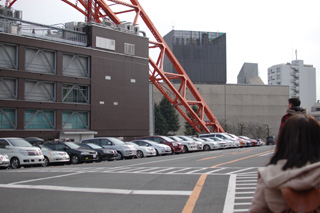 水たまりに映すぞと思って東京タワーの真下まできたら、むしろ足元しか映らないのでありました(あたりまえ)。泣く泣く芝公園のちょっと離れた場所まで移動。