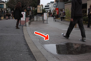 若者のまち原宿にはおしゃれカップルがたくさん歩いておりました。しかも裏原宿、通称キャットストリート。 そこで水たまりを覗き込むのにはちょっとだけ勇気が必要だったのでした。