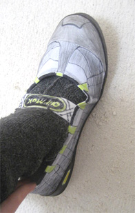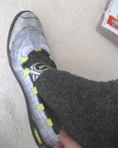 かかとを つぶしてはけばね。 (つぶしすぎ?)