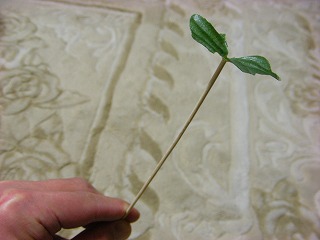 そう考えて作ったのはこれだ。竹ひごの先を2つに裂いて、小さな葉っぱをつけたもの。