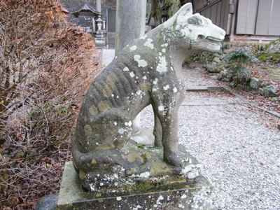 同じにオオカミの狛犬でも神社によって、同じ神社でも場所によって全然違うので見ていて飽きない。でも、やはりアバラに目が行く。こちらの狛犬も薄っすらだけれど、アバラが浮いている。ほれぼれしてしまう。やっぱり「オオカミ=アバラ」だ。