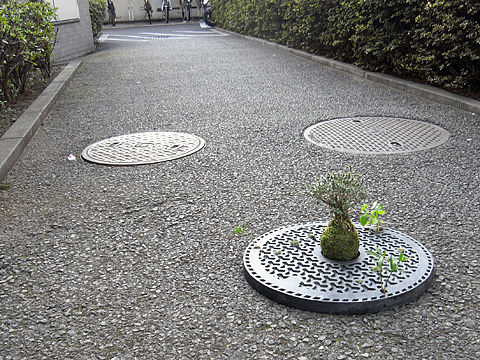 マンホールらしさを強調したら、ずいぶんな大きさになってしまったが、これはこれで「自然と共存する」という主旨に合っているのではなかろうか。マンホールを部屋に入れた時点で“自然と共存”もないだろうが。