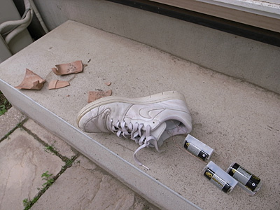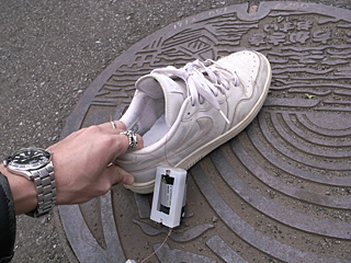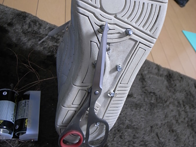 ひとまず靴を履かずにスイッチだけ入れてみる。いけ!電磁石、お前の力を見せてやれ(おれに)! |