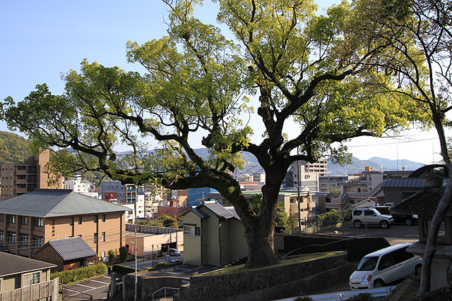 大クスは探してみると、けっこうあちこちに有名なものから無名なものまでたくさんある。それらも適当に見て歩いたが、ひとつひとつ書いていくとキリがないので、最後にもうひとつ、諏訪神社にある大クスを。
