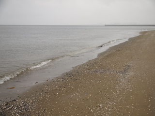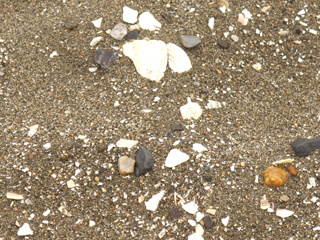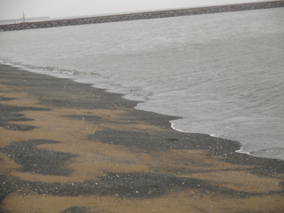 この幕張の浜も、おそらく砂が少なくなって足しているのではないだろうか、ところどころ砂の色がまだらになっている。