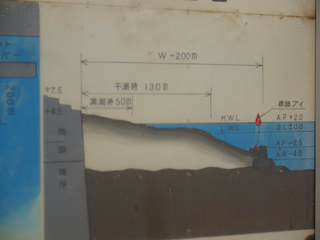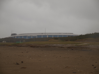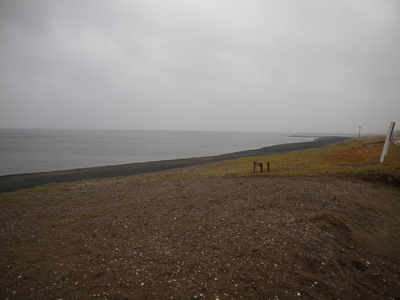 上の地図でもわかると思うが、たぶん本来砂浜にしたかったんだろうな、というところがコンクリートで護岸されている。 波の浸食のせいだろうか。 やせた砂浜という感じだ。