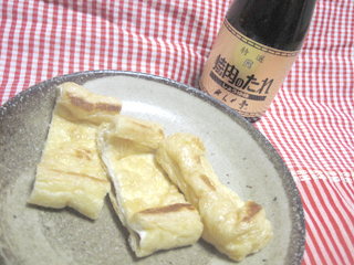 続いては、焼いた油揚げを焼肉のタレで食べるというこれもだいぶ突き抜けて節約なメニューだ。さすがにこれならセレブの牙城も崩れるんじゃないか。