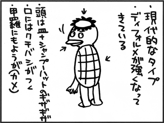 カッパの形状やパーツによって、大まかに出てくる時代が違うそうだ。ここは僕がイラストにしました。 |
