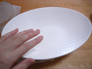このエコラップに例えると、ラップの張りが強いほど高い音に、弱いほど低い音に。そして皿の大きさが大きいほど低い音に。器の底は丸いものを使う、ということになるのか、なるほどー。