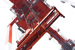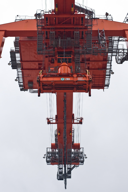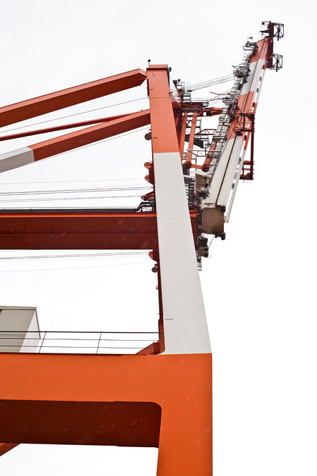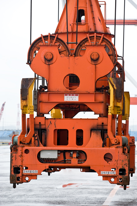 コンテナヤードは、国際的な取り決めにより敷地に厳重なセキュリティがほどこされている。工場とはちがう種類のシビアさがある。「あれは振動感知するワイアですよ。気をつけてください」って何回も言われた。こういうところでよく柵にがぶり寄りがちなので気をつけよう、自分。 |