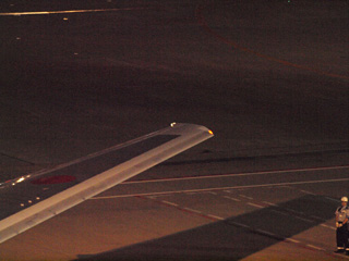 下の写真は、手前がボーイング社製で奥がエアバス社製だ(現地で巨大なカメラを持っていたマニア風の人に聞いたのでたぶん間違いない)。 この二機の、翼の先の形状が違っているという。