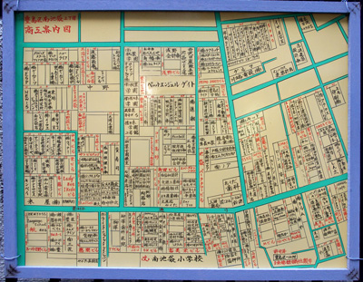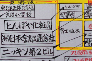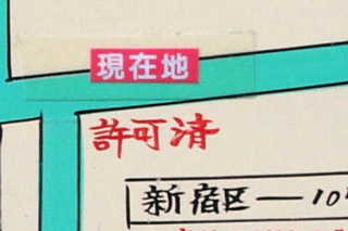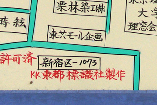 ちなみに、東都標識社の方がシール貼りだからといって、現在地の標記が正鵠を得ているというわけでもない。書いていないのが大多数だし、書いてあっても色あせていたり、えらく端っこだったりする。