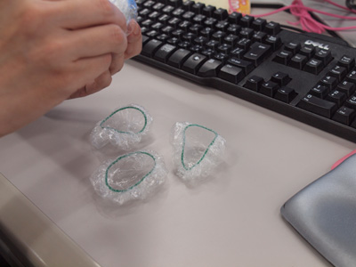 というわけで、美容用品を扱っている通販サイトから購入した。 100個入りで600円だった。 購入の翌日に宅配便で自宅に届けられたのだが、中身がこのようなものでも通販で買った荷物が届くとうれしい。 届いた耳キャップを観察したが、輪ゴムにビニールが巻いてあり、シャンプーの時に髪を濡らさないようにかぶる、シャワーキャップと同じ構造になっていた。