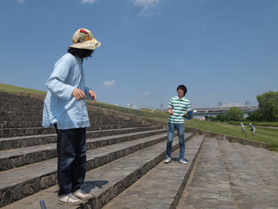 守備側(今日は二人しかいないのでピッチャー)は、打たれたボールを取って、棒のところに戻ってきたらバッターはもう走れない。そのとき守備は「ゼロ!」と叫ぶ。