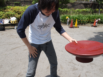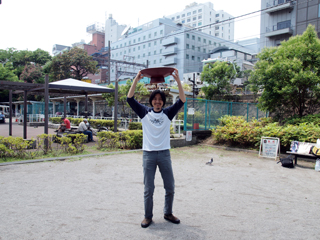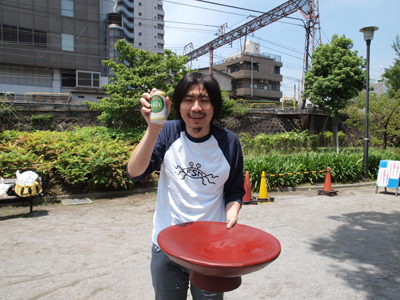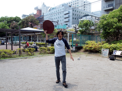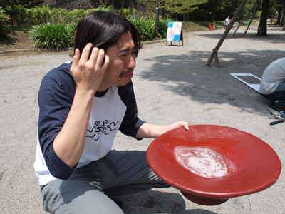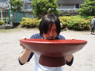 さて、できあがった大盃を持って公園にやってきた。 梅雨の晴れ間の晴天で、おてんとうさまもこの完成を祝ってくれておるようだ。