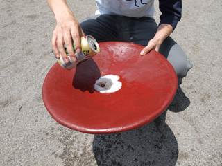 大盃で飲むのは、たしかに楽しいのだけれども、もしやるんだったら、食器に使用できる塗料を選んでやった方がいい。 じゃないときっと有毒だ。 たぶん、数日くらい乾かしたら、匂いも消えるんだろうけど、それでもあんまり体には良くないので、僕が作った方法でまねするのはよくないと思う。