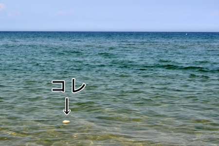 え、お、おおお!!本当に見つかった!見つけた瞬間でも冗談かと思う違和感。なにコレなにコレ、ホントにあったよ、なんであるの!?仕込みじゃねーか?そう思うかも知れないが、この質感。正しく海岸に打ち上げられた質感だ。