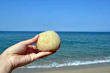 海に、ニンニク。な、なんで!?よくわからないが嗅いでみると、臭い。こりゃニンニクだ。なんかわかんないけどニンニクが見つかって凄くうれしい。何度も匂いを嗅いで臭いと喜ぶ。