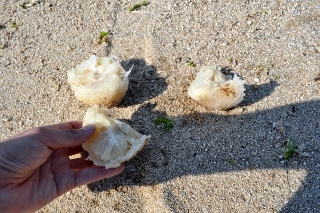 割ってみるとどっからどう見てもミカン。更に先には皮が落ちていた。海にミカンも想像しづらいが、玉葱と間違えたのだから先入観というのは恐ろしい。