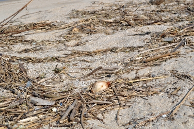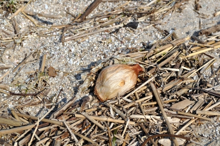 あった、ホントにあった!玉葱だ!! 木々と共に浜辺に打ち上げられていた。