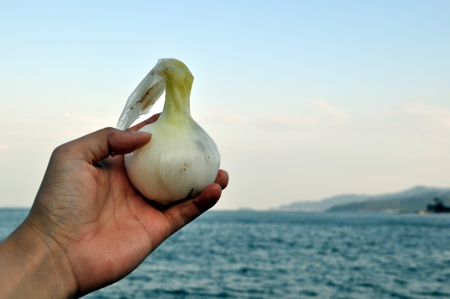 さっきの玉葱とは違い、皮が取れているが身には張りがある。流されたばかりだろうか。この位の大きさは手頃で使いやすそうなのに出荷には向かないのだろうか。