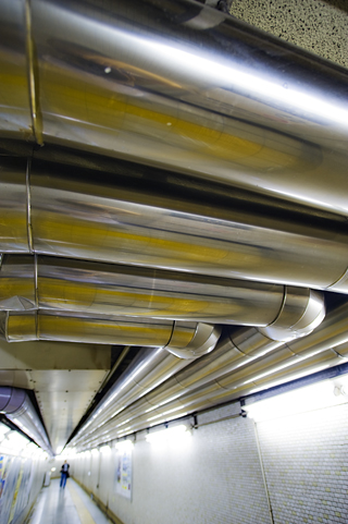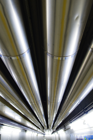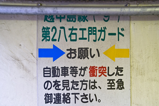 で、4つめは越中島貨物線のガード下。その名も「八右エ門ガード」。その古風な名前に似合わぬ近代的な雰囲気をもったガード。今回めぐった4つの中でもっともそつのないつくりであった。