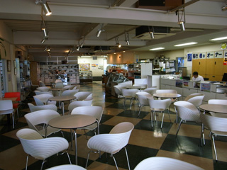 プロペラカフェの周辺は飛行機の格納庫や測量会社の社屋など、一般人が入っちゃいけないんじゃないかなという雰囲気の場所にあるのだが、ここは誰でも自由にきていいそうだ。 空港の決まりで、外に看板をだせないので、「知る人ぞ知る」という感じになっているが、店内は開放的だ。