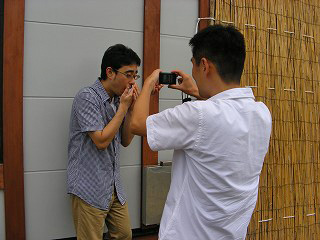 この姿勢をとりつつ、顔をカメラの方に向けなければならないというのがつらい。全体的に細かくプルプルしたまま、なんとか顔を二人で横に向ける。そこにはティーンの楽しいひとこまという雰囲気はない。 フィジカルが切実なのだ。