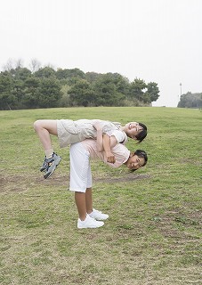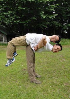 続いては二人バージョンのアクション編。小学生のとき、体育の準備運動の一環としてこんなのをした覚えがある。それから30年の時を経て、僕は今、櫻田さんとこれをやろうとしている。