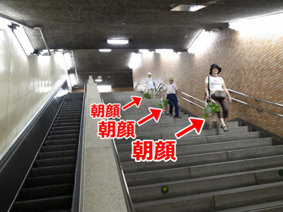 聖蹟桜ヶ丘駅の改札をくぐるとまず目に付いたのが賞を貰った朝顔だ。