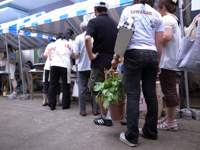 さて、朝顔であるが、年配のご夫婦がよく買って行くようだった。若い家族連れは境内の屋台がメインだ。