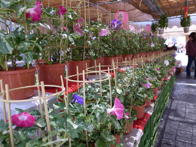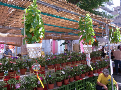 ここも朝顔以外に野菜が売られていた。朝顔に野菜と緑が多い祭りである。朝顔は一鉢1500円と先の国立と同じ。朝顔の相場なのだろう。時間が早いためか買い求める人は少なかった。