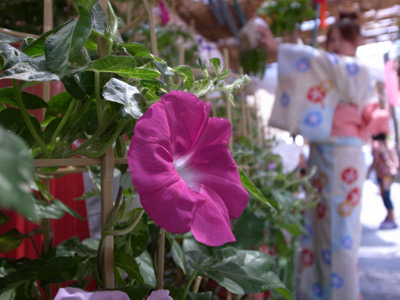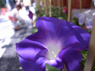 祭りの賑わいが朝顔の風流さを増進させ、朝顔が更なる素晴らしき花へとなっていた。