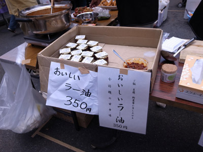 さらにここで初めて食べるラー油も見た。全ての興味が持っていかれた。私は食べるラー油を食べてことがなく、ここ最近そのことばかりを考え生きてきていた。素晴らしい朝顔市である。