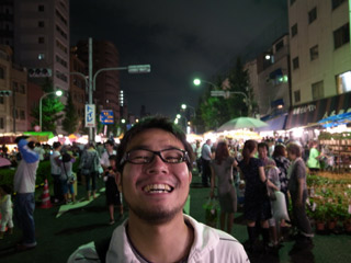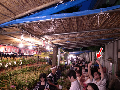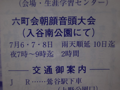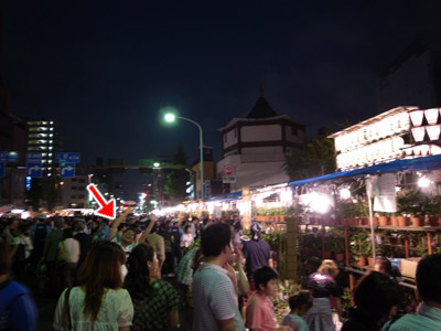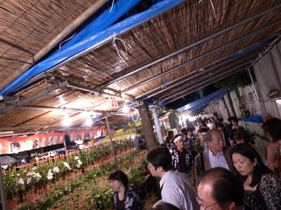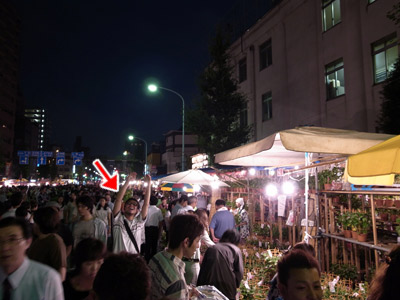 縁日も出ており子供たちや浴衣姿の人々も多い。私は朝顔の風流という波に流され、人の波にも流された。