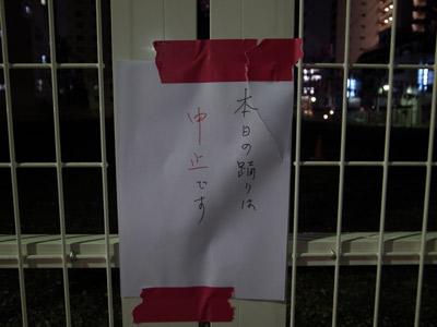私は浴衣姿の女性達を眺めていたい(風流だから)という欲求を断ち切り公園に向かったのだが、人はどんどんと少なくなり、結果、本日中止ということになっていた。