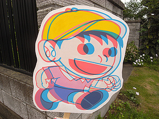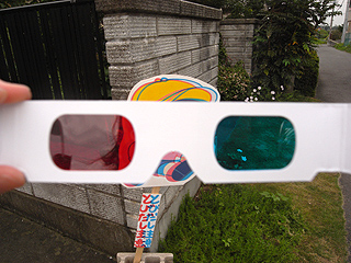 実際、どう見えたか。看板から数メートル程度離れてから前後に動いて見てみると、なんとなく飛び出して見えた、気がする。元の絵が平面的なので、のけぞるほど飛び出しはしなかったが、あまりそこは掘り下げないことにして終わりたい。