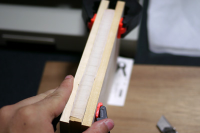 そんで、この部分を再び接着すればいいわけなんですが、単純に接着剤を塗っただけだと、本を開いた時にわりとカンタンに外れちゃうようです。