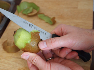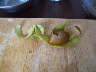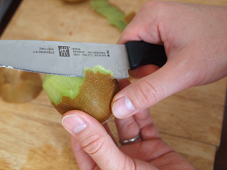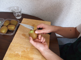 小さなキウイをむくだけで初心者と経験者にあらわれる歴然たる差。 大きな衝撃を受けたぼくは、言われるままに別のキウイをむいた。