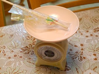 食べる前に量った重さが85gだったから、今回の移動中に溶かせた量は75g。