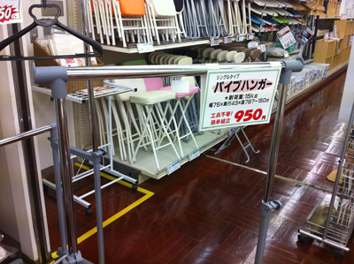 最近、すげー安いなと思って驚いているのが、このホームセンターで売られているパイプハンガー。